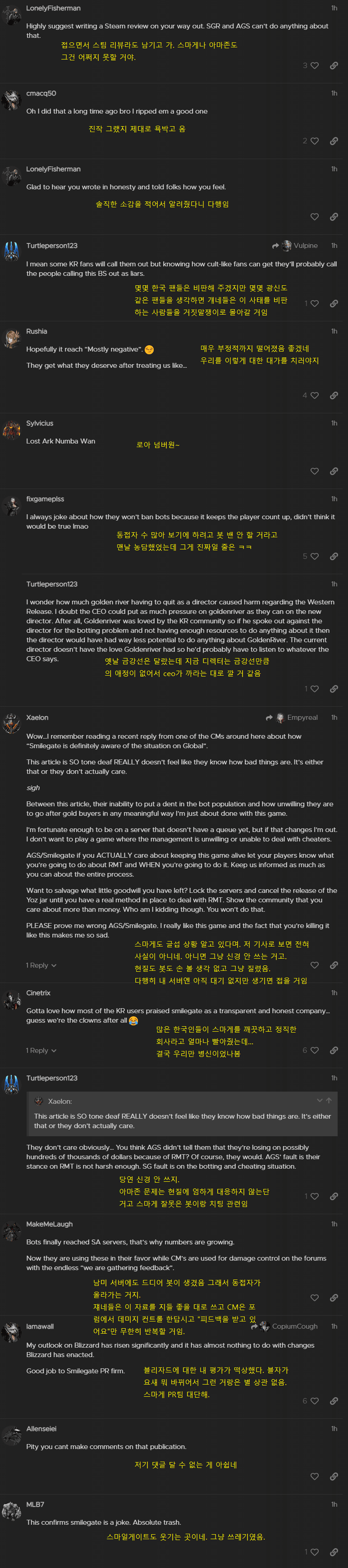 그런 상황인데 저딴 인터뷰 하고있으니 민심 폭팔하지 ㅋㅋㅋㅋ 오픈 이후로 경쟁작 계속 나와도 건재했는데 결국 짱깨 작업장 못잡아서 자멸한 게임으로 기록될 예정.