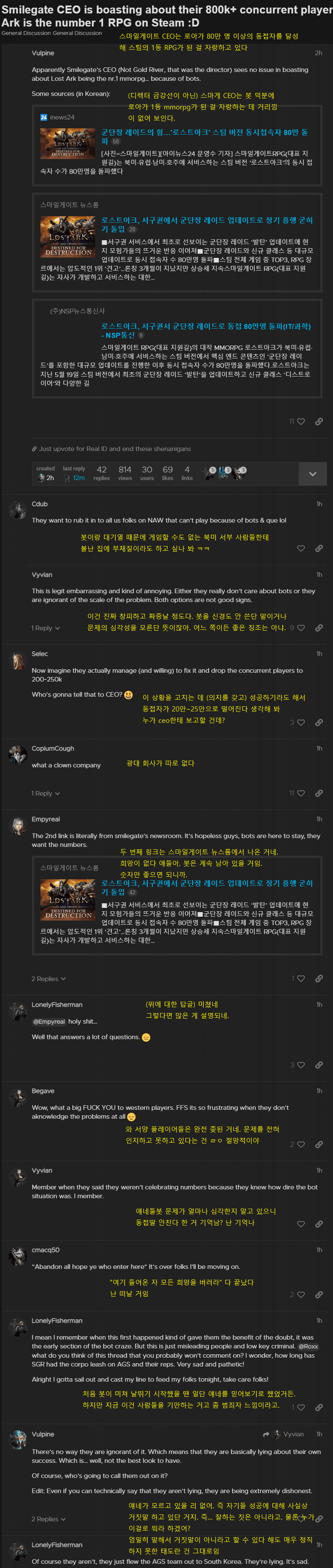 한국에서 스팀 로아 동접 80만 돌파했다고 자랑스럽게 기사까지 냈는데