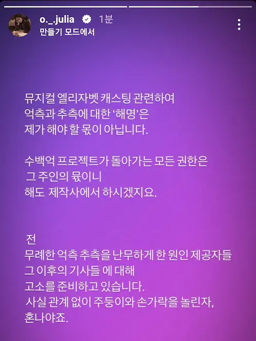 뮤지컬계는 옥주현판 김호영 저격→김소현 끝인사→이지훈 한숨