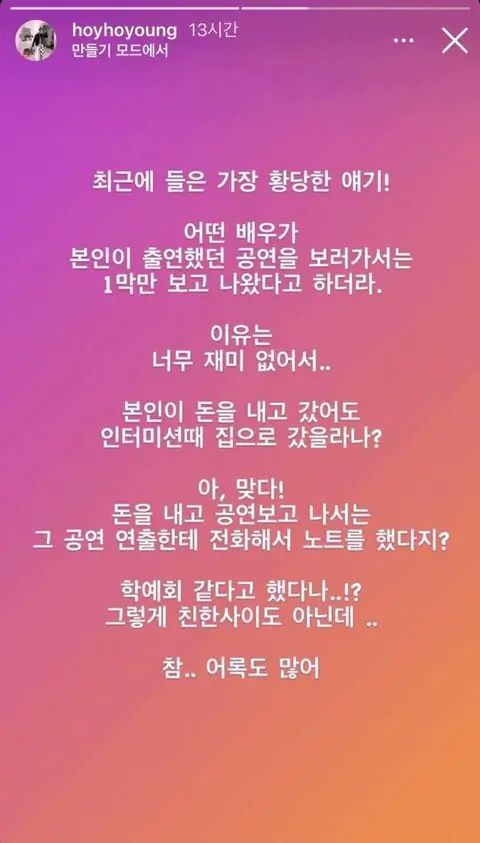 차라리 노래 공연이나 연극은 이해가 되는데 한국 뮤지컬은 진짜 병신스러움의 극치임