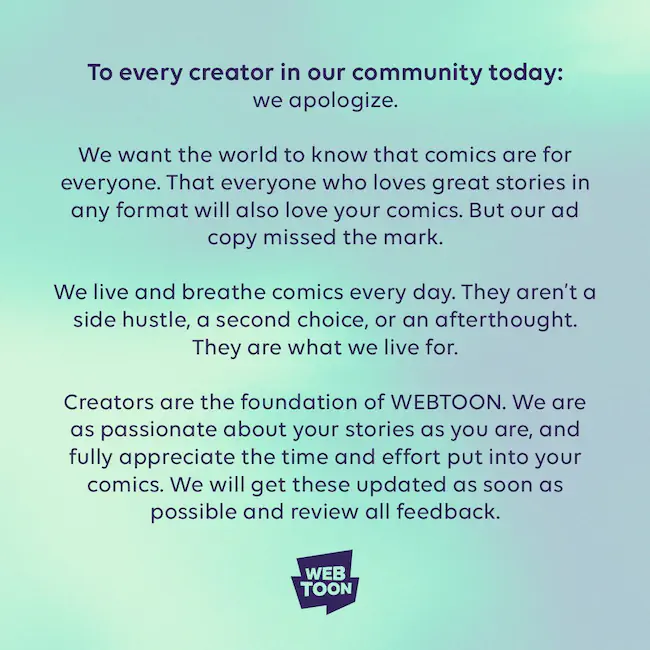 Webtoon Offers Apology For Advertisement After Social Media Backlash