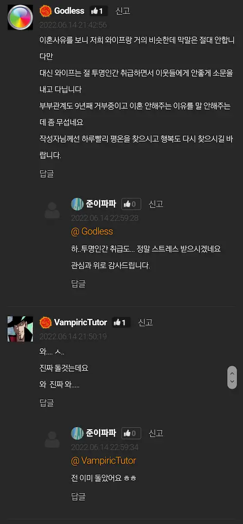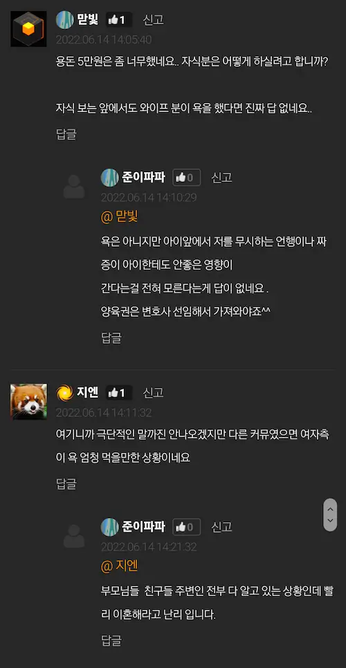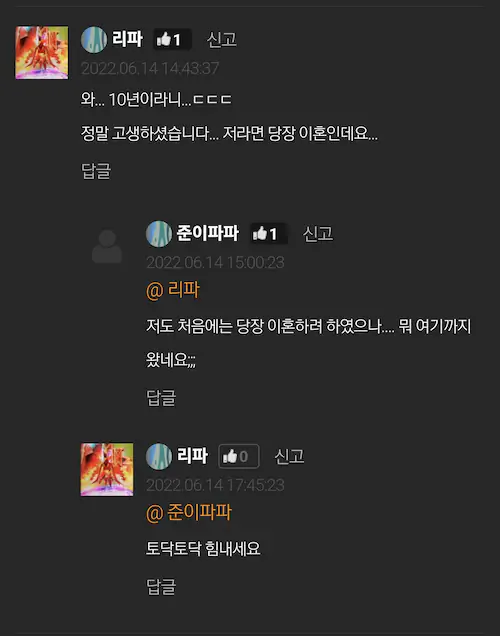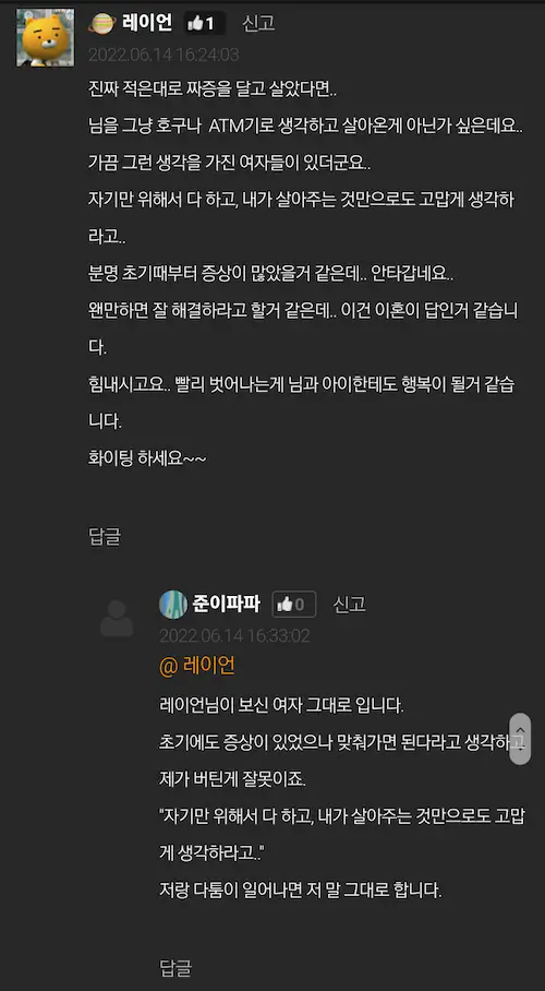 이 모든게 점차 쌓이니 왜 내가 이런 대접 받으며 결혼생활을 하는 지 모르겠어서 이혼 결심