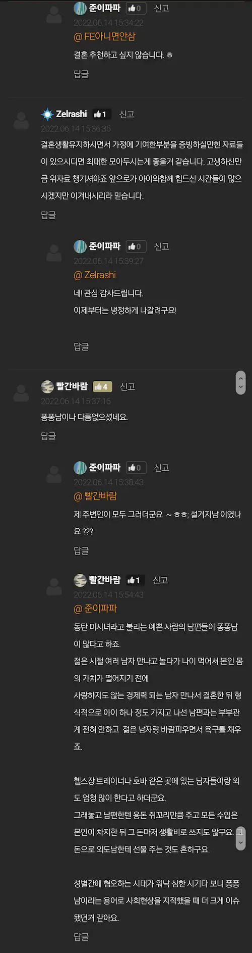 왜 저러고 사냐. ㄹㅇ로 내가 부모였으면 피눈물 흘리겠네. 기껏 키워놨는데 퐁퐁남짓거리 하고 있으니