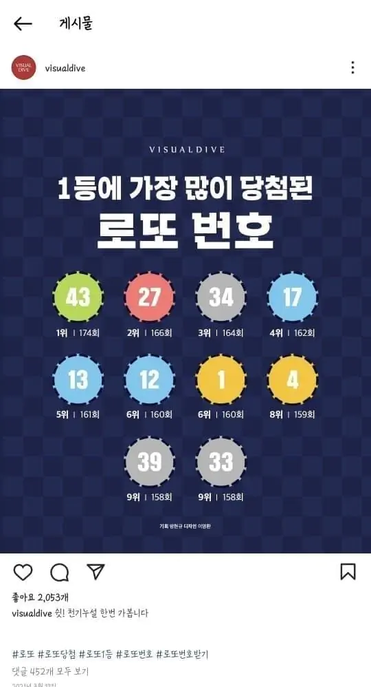 1등이 50명나와 화제가 된 지난주 당첨번호도 통계상 많이 나온 숫자를 조합한 번호였음