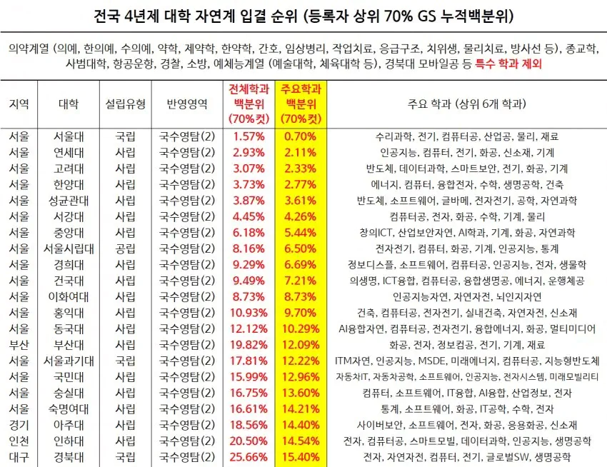 근본 공대들의 순위가 뒤로밀리고 데이터, 보안, ai등의 it세부 전공들이 상위권을 차지한것이 보인다.