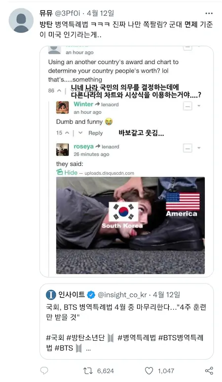 방탄은 어째 사방이 적이네. 군대 가야겠어