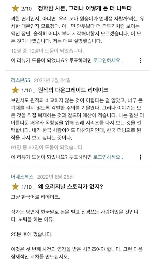 원작부터가 존나게 재미 없던데 계속 추천리스트에 올라와서 ㅈ같더라