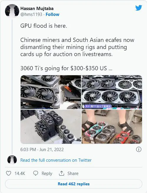 코인가격 폭락으로 엄청난 양의 RTX30시리즈가 중국을 기점으로 시장에 풀리고있다.