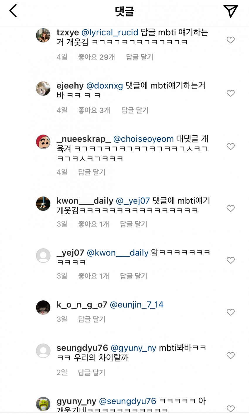 내 여동생 얼마전에 진짜 하루종일 mbti mbti 거리던데 그냥 관심 1도 안가서 이해안되더라