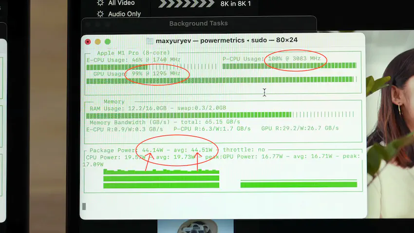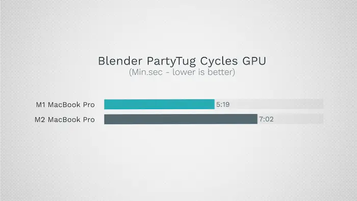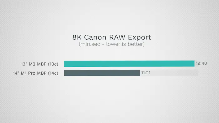 M1이 10코어 M2 GPU에 비해 낮은 스펙의 8코어 GPU 성능으로 인해 성능이 뒤처졌음에도 불구하고 M2는 심각한 발열 쓰로틀링으로 인해 이 영상처리 성능 테스트에서 고작 10%만 나은 성능을 보였습니다.