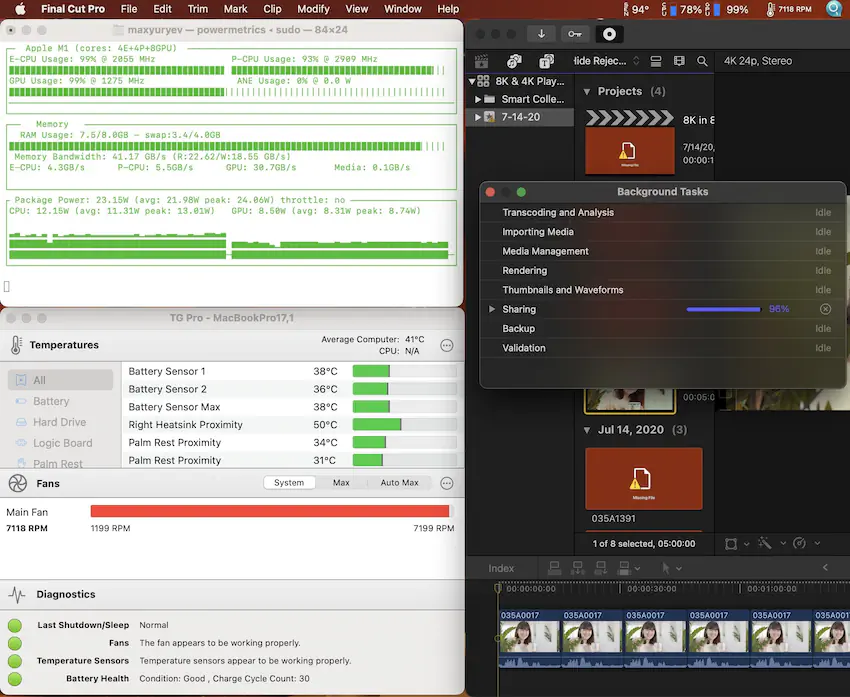 M2로 8K Canon RAW를 처리했고 온도가 108°C에 도달했습니다.