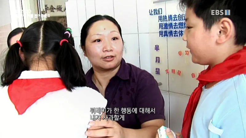 담임선생님은 샤오페이를 열심히 달래주는데