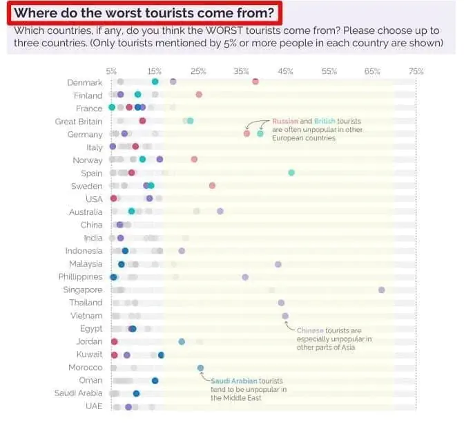 우선 최악의 관광객으로는 중국이 1위를 차지함