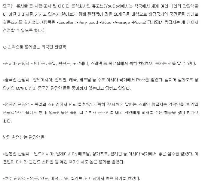 그 뒤로 러시안와 영국인이 좀 안왔으면 하는 관광객으로 뽑힘