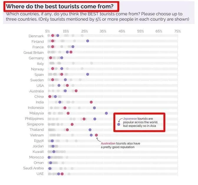 내용은 당신들이 생각하는 최악의 혹은 최고의 관광객은 어느나라 사람들인가? 라는것이었음