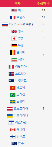 21세기 주요상 수상자수로 한국과 일본의 수준을 비교해보자