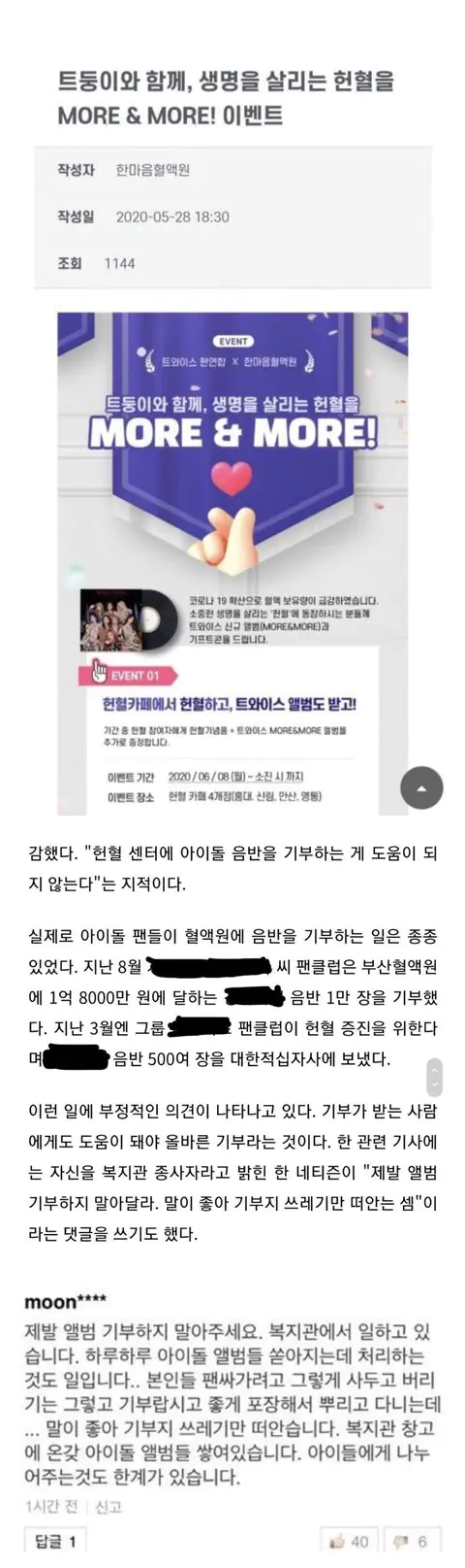 복지센터에서 기부 앨범안받는다하니 인터넷에서 조롱하는 모 아이돌팬들도 있네요