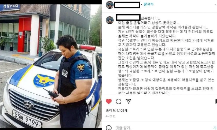 부작용일수도 있는게 빌더들은 디자이너들이나 약물십수년한 베테랑들이 옆에서 케어 다해주는데 아마 일반인이 빤거라면 게다가 하루종일 운동하는 사람도 아니고 일반 직장인이라서 제때 케어를 못받은거임. 그거 아니면 백신부작용일 확률도있어보임. 경찰은 아마 백신 4차까지 무조건 강제로 맞아야해서