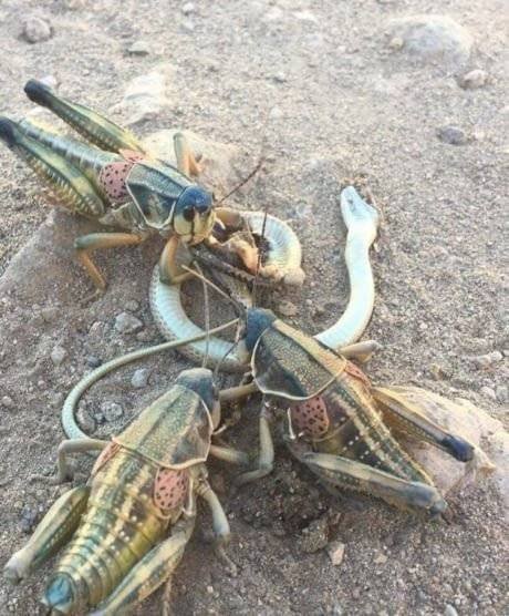 메뚜기가 뱀을 잡아먹고 있네;;