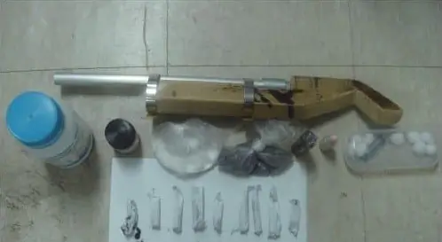 파이프, 검정테이프, 나무판, 흑색화약이 전부였던 이 총기는 범인이 자신의 목적을 수행하는데 충분한 위력을 발휘했다.