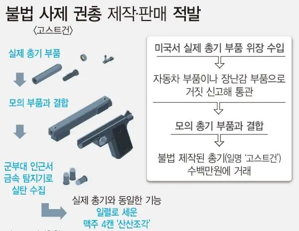 사제 총기는 총의 작동 원리만 제대로 알면 공구들을 이용해 쉽게 만들 수 있어서 검거하기도 어렵다.