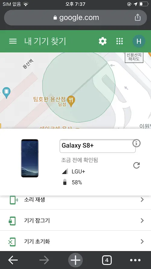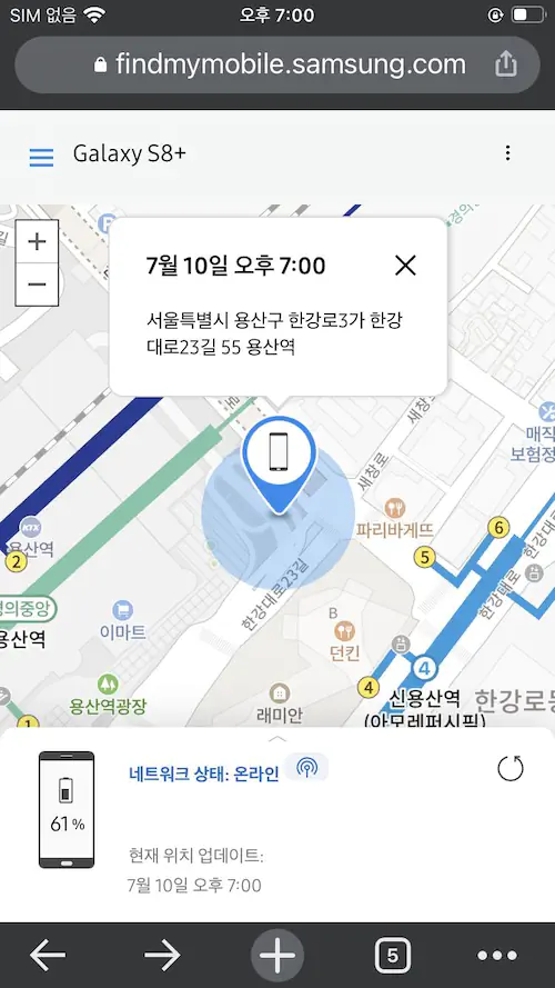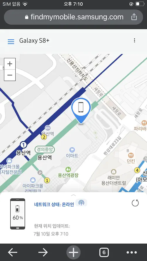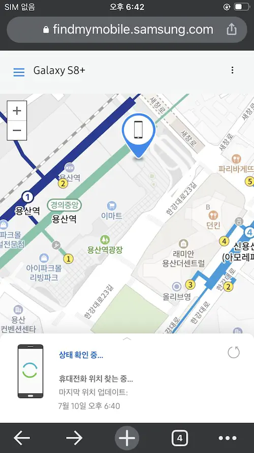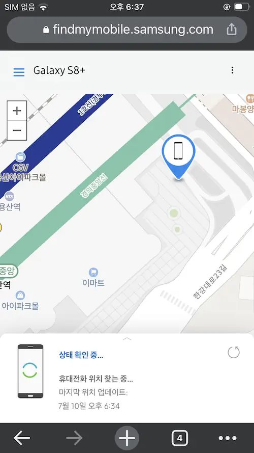 분명 제가 근처에 있는것으로 나와서 소리 나는 기능을 켰는데 안나오더군요. 다시 위치를 추적했더니 그이제는 아이파크몰 주차장 내려오는길에 있는것으로 나왔습니다.