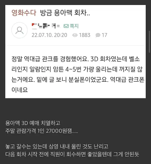 일단 저는 휴대폰이 상영관 안에 있을거라고는 생각을 아예 못했습니다.
