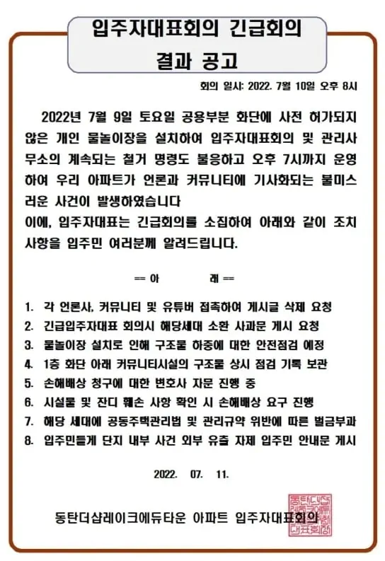 좀 오반데 대응이 이상하다 그냥 그 수영장 설치한 사람이 민폐쟁이인거뿐인데 왜 아파트 대표란게 튀어나와서 아파트의 명예가 어쩌고 굉장히 이상함.
