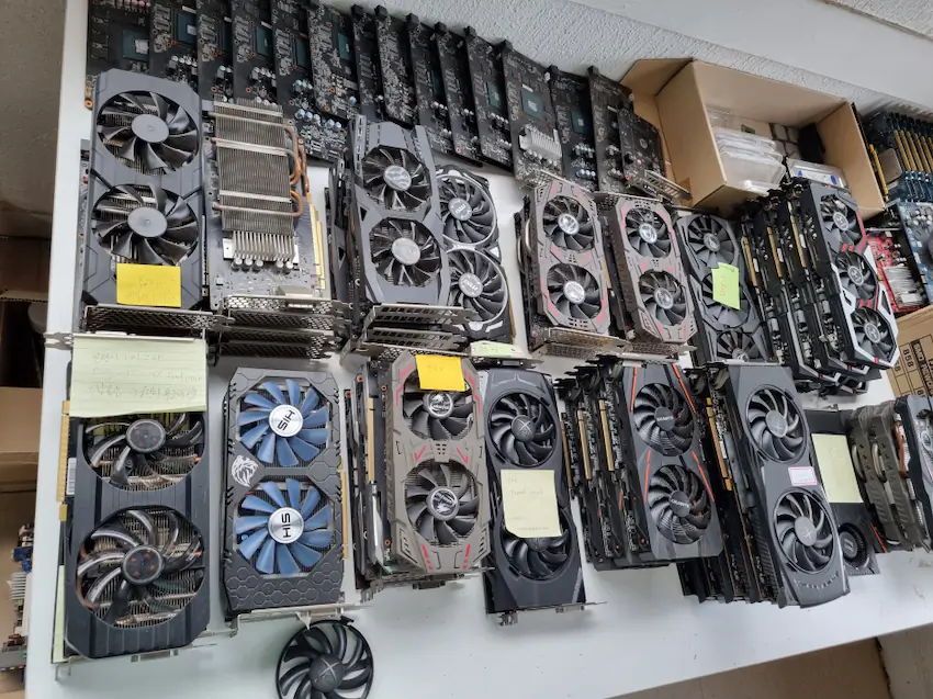 죽거나 혹은 죽은 척하는 노예 그래픽카드들.