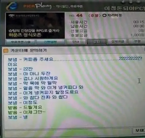 백만원 피방 아재짤이 없어