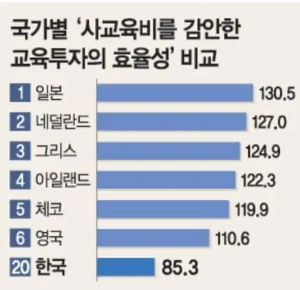 내 예상대로 교육비 투자 대비 아웃풋 일본이 oecd 1위고 한국은 20위