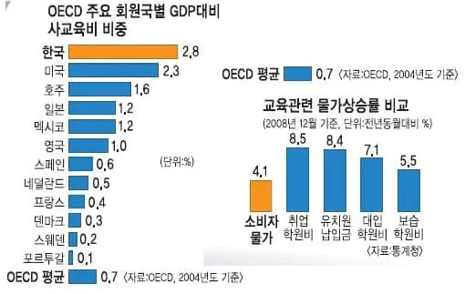 거기다 소득 대비 사교육비 평균 지출은 한국이 oecd 1위임 이렇게 퍼붓고 진작에 줄였어야되는걸 시위한다고 계속 뽑는 병신짓 때문에 필요도 없는데 계속 뽑음.