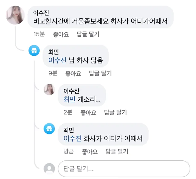예쁘다는 여자들 닮았다고 하면 화내면서ㅋ