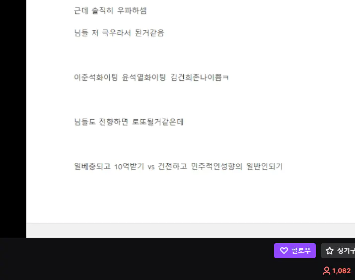 댓글창에 586 좌빨들 오지게 부들거리네ㅋㅋ 애국보수 야순이가 당첨된게 그리 배아프디?