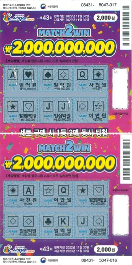 2000은 세트로 사면 붙여서 당첨되서 10억+10억 20억임