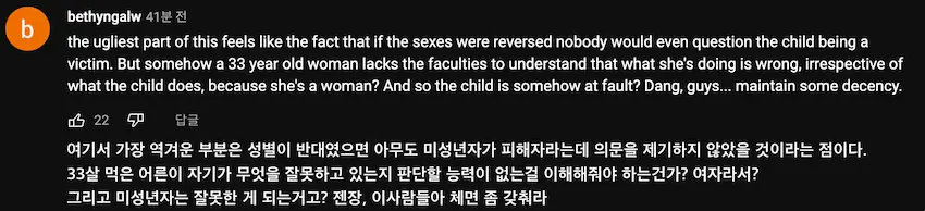 영국남자 그루밍 논란에 대한 유튜브 외국인 댓글 반응