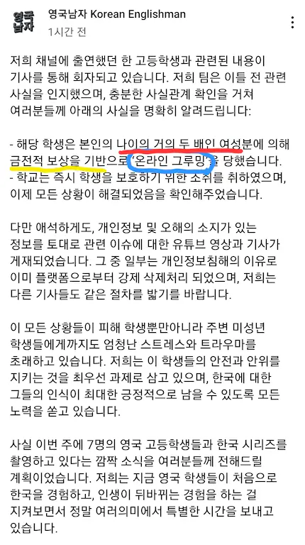 유튜브 영국남자 출연자, 한국 여성에게 온라인 그루밍을 당했다고 해서 논란
