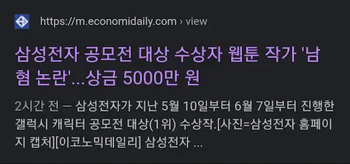 '남혐 논란' 웹툰 작가, 삼성전자 공모전 대상 수상 논란