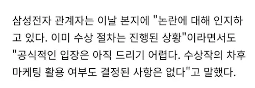 삼성이 안그래도 gos 때문에 최근 이슈에 대해서 민감한데 저런걸 수상했다? 이미지 ㅈ망하는 지름길임 ㅋㅋ 실제로 이의 신청 많이 들어오면 재고 할걸?