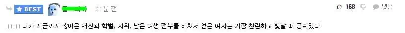 배우자라는 건 내가 책임감을 지닐 수 있는 내가 헌신할 수 있는 가치가 존재하는 사람이어야하는데 한녀들은 스폰 물주를 원함 ㅋㅋ