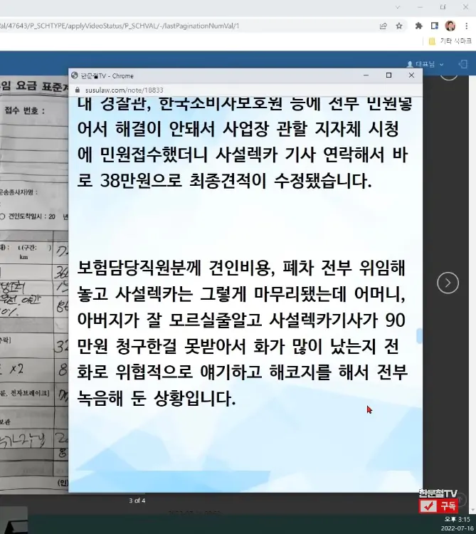 저게 참 보험으로는 그냥 서비스잖아. 공짜로 하는걸 90만원 내라고 하면 어이없지.