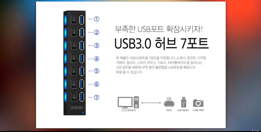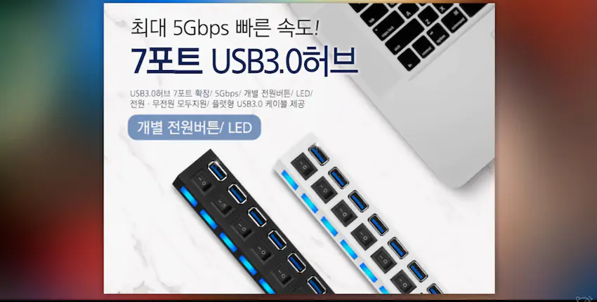 7개~8개 이런거는 1~4포트만 작동 나머지는 2.0 4포트짜리는 1포트만 USB직렬연결로 3.0속도 나머지 2.0