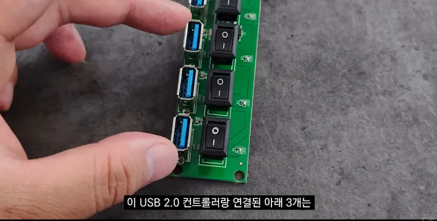 분해해 보니 일부만 USB 3.0 컨트롤러가 탑재되어있고 나머지는 USB 2.0 컨트롤러가 탑재되어 있다