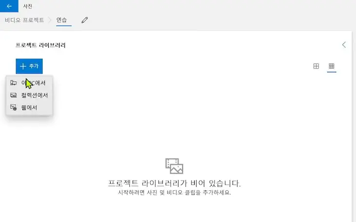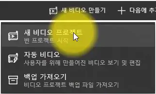 새 비디오 프로젝트를 누른다