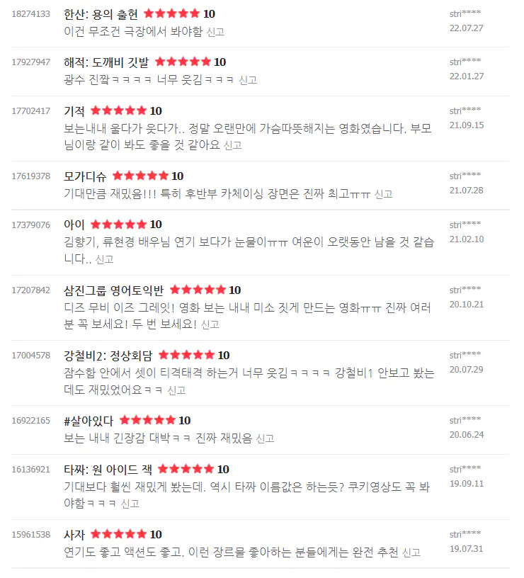 강철비2에 10점준거보소 ㅋㅋㅋㅋㅋㅋㅋ 저 개쓰레기 영화를