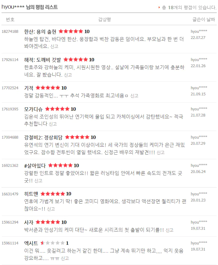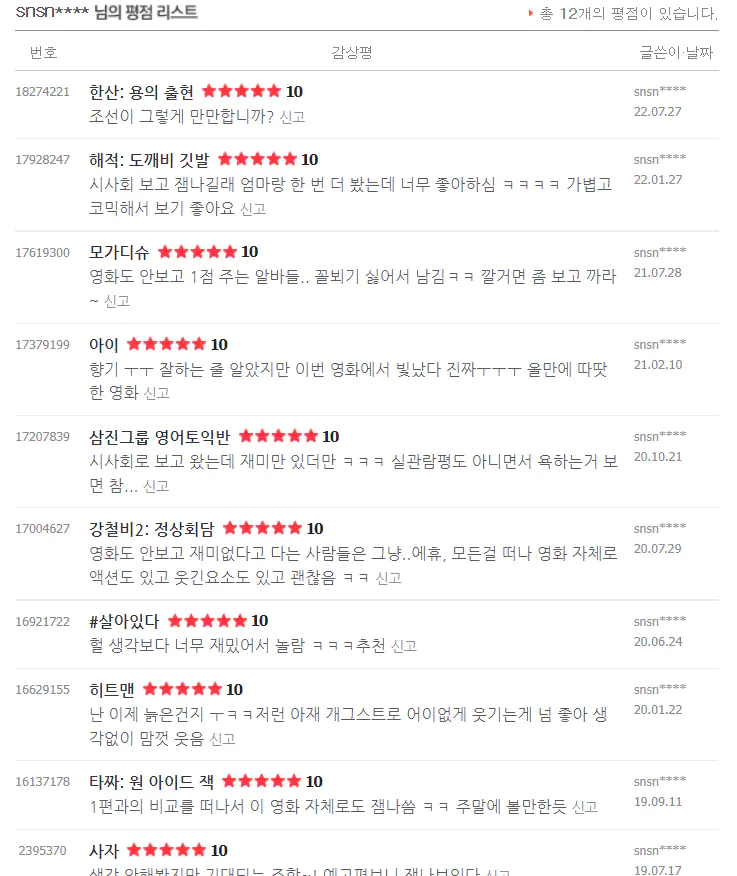 진짜 네이버 영화 평점은 아직도 알바가 대부분이더라. 닥스2 평점 보는데 말투가 존나 인위적임 ㅋㅋㅋㅋㅋ