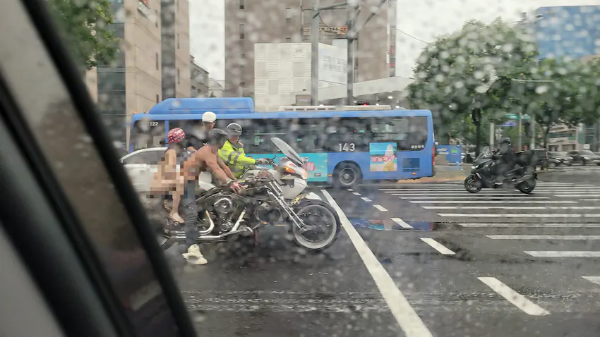 오토바이 한 대에 두 명 타도 법 안 걸리냐?
