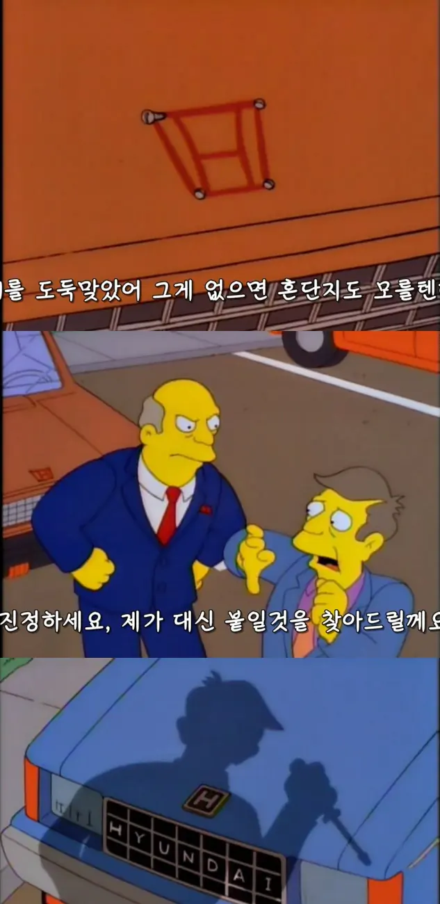 심슨에도 혼다마크인줄 알고 훔쳤다가 현대인거 알고 다시 버리는 그런 에피소드 있었던거 같은데 ㅋㅋㅋ