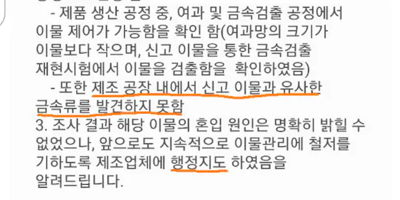 답변이 공장에서 불러준대로 쓴 거 같은 느낌이 드네요. 원인을 찾을 수 없다. (니가 넣은 거 아냐? 니가 넣은 거 같은 느낌이 들지만) 행정지도 하는 걸로 할께! 라는 답변 같아요.