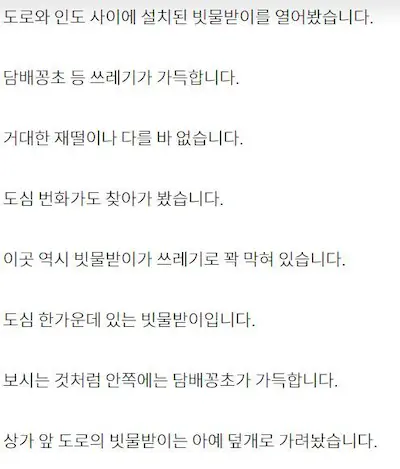 담배 길거리에 여기저기 버리니까 하수구 초입에 다 막혀버림